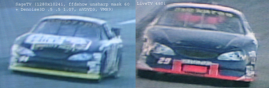 At one point I compared the raw 480i to scaled (I think it was 1280x1024i), ah, I still have the screenshots.... Same TV, same distance from the TV, same (roughly) size on screen. Only difference is the left side is scaled to HD, the right is native 480i. If you've got Dish, or DirecTV, it's not that hard, almost all the major networks are delivered in HD. Sure it's not all HD sourced, but even the upconverted SD is almost always way better than the SD versions of the channels. Last edited by stanger89; 11-18-2009 at 08:14 PM. |